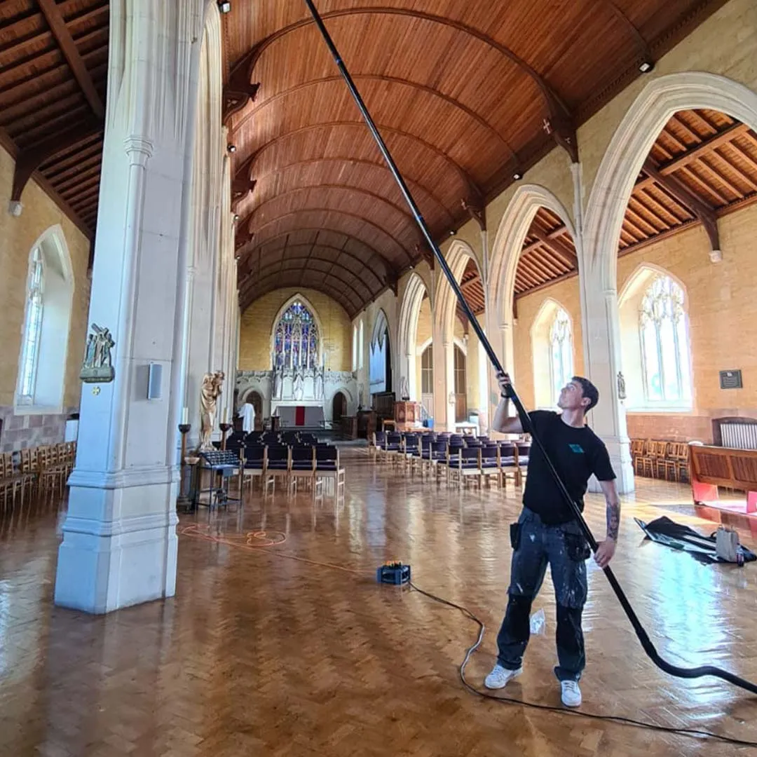 We use our industrial strength vacuum and lightweight pole system that allows us to reach areas up to 50ft high. Our variety of detachable cleaning heads will suit all of your high reach cleaning needs.